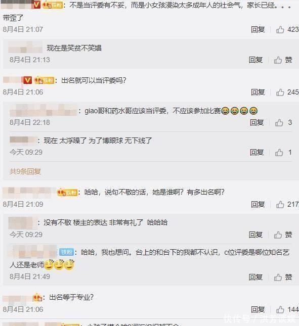 牙东说念主的回报再度激发不少网友热议,纷纷示意:「不是当评委有不当,而是小女孩浸染太多成年东说念主的社会气,家长如故带歪了。」、「出名就不错当评委吗?」、「现时,太浮滑了,为了博眼球,无下限了。」、「出名就是专科?」、「主如果小孩拿腔拿调就很弗成儿了……」、「本是高枕而卧的童年生涯被扮成成年东说念主的乌烟瘴气。」